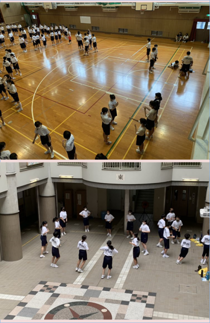 体育大会全体練習を運動場で行う予定でしたが、昨夜の雨でグランド状態が悪いため、団練習に変更となりました。