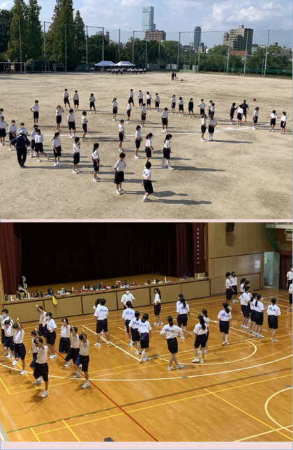 4つの団に分かれて、3回目の団練習を行いました。団リーダーの3年生も練習のたびに慣れてきているようで、フォーメンションや振り付けを、積極的に後輩たちへ伝えていました。