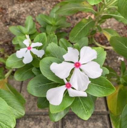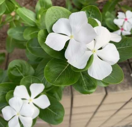 南玄関に植わっている「日々草」が、夏の日差しを浴びて元気の花を咲かせています。暑さや強い光にもとても強く夏花の定番です。