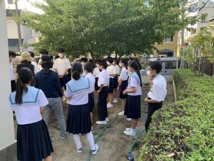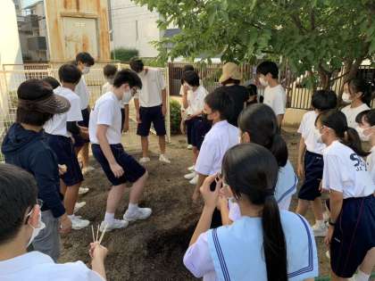 ふれあい委員の生徒が元気アップコーディネーターさんのご指導のもと、なにわの伝統野菜である田辺大根の種植えをおこないました。