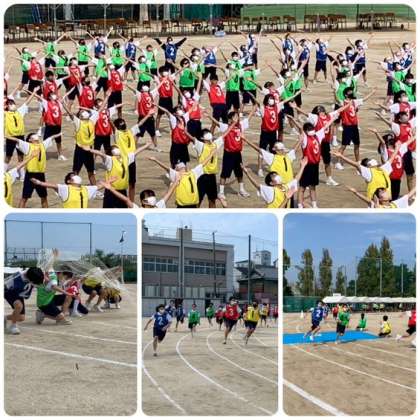 午前中に体育大会の予行を行いました。本来なら3限目から6限目を予定していましたが、午後から雨予報のため、急遽変更して実施しました。