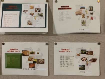 2年生は授業内の取り組みとして、近畿地方のお土産をパワーポイントで作成しました。とても個性豊か