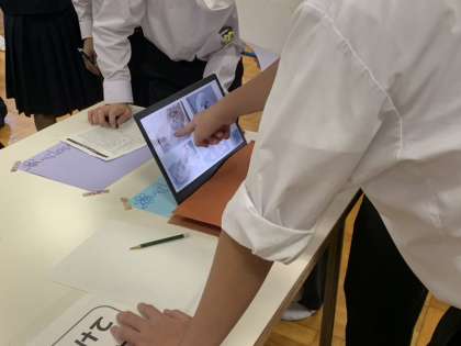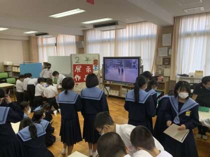5月の校外学習のまとめとして、各班で作成した動画と、英語科の授業で取り組んだ、「将来の夢」をテーマにしたスピーチ動画を展示しています。