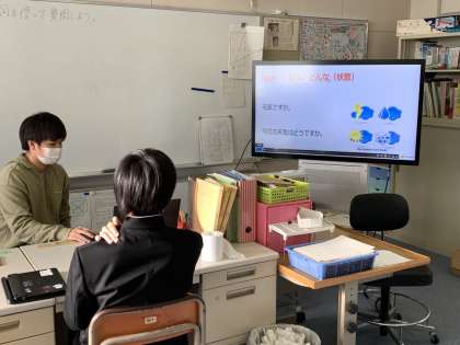 電子黒板を使って視覚的に確認しながら説明することで、定着が図れているようです。