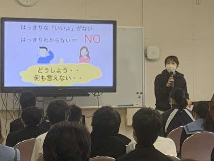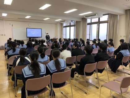 大阪府医師会より福地先生に来校いただき、1年生はティーンズヘルスセミナーを開催しました。男女交際や第二次性徴などについて、パワーポイントを使いわかりやすく解説していただきました。終了後は個別相談時間を設けて対応してくださいました。