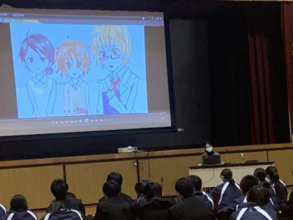 阿倍野区保健福祉センターの青崎先生をお招きし、3年生対象に性教育のご指導をいただきました。性感染症についての症状や予防等について学習しました。HIVに感染するまでの経緯、感染した時の心理的ダメージ、周りの人のサポート等をわかりやすいアニメスライドを見て学びました。長い人生において、性感染症から自ら身体を守る重要性を教えていただいた貴重な時間となりました。