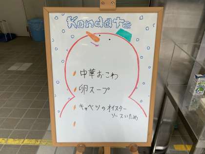 2月になり、メニューボードの図柄も雪だるまに変わりました。配膳員さんが言うにはスキーやスケートのデザインは「すべる」というイメージがあり、受験を控えている3年生のためにあえて外したということです。