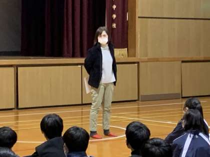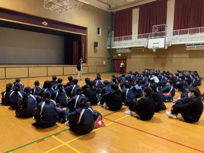 3年生は明日の大阪府内私学受験に向けて、進路指導主事の先生から受験での心得を聞きました。