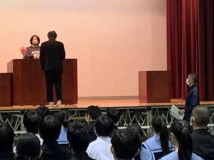 担任の先生からの一人一人の呼名に返答し、正面に舞台へと向かい,証書授与の所作を確認しながら、胸を張って、各自席に戻ります。