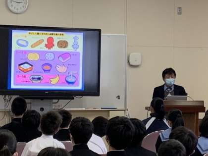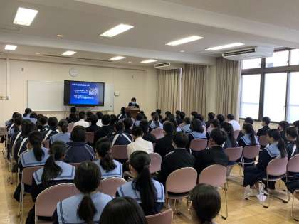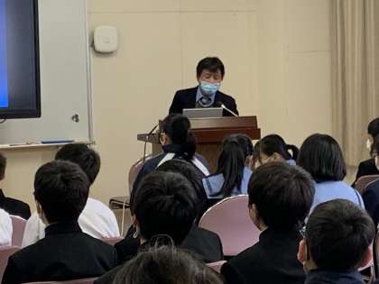 生徒に分かりやすく優しく話してくださり、説明用のパワーポイントも1年生向けに面白く楽しく作成していただき、生徒も真剣に聞き入っていました。