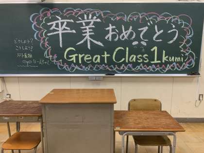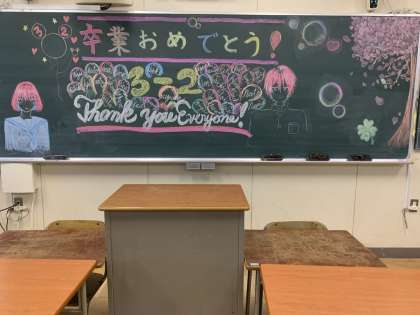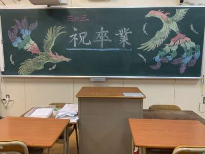 卒業証書授与式を迎え、各担任の先生からは子どもたちへの最後の想いが黒板に描かれています。3年間共に過ごした学び舎を巣立つ卒業生の皆さんに、幸多きことを願っています。