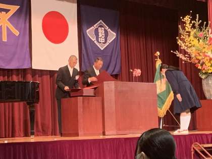 大きな声で「ハイ」と返事をした後、堂々と証書を受け取りました。