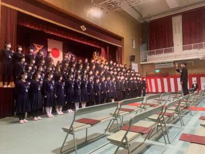 一番最後は3年生による謝恩の歌(混成3部合唱)で、「懐かしい未来」と「春風の中で」を自分たちの想いや感謝の気持ちを込めて歌いあげました。指揮もピアノ伴奏も素晴らしいものでした。