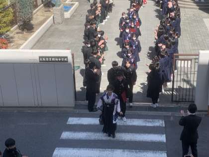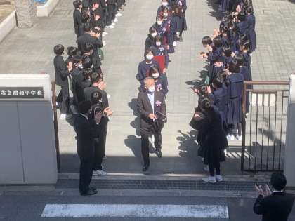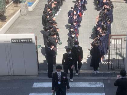 3年生は笑顔で花道を通り抜けて、新たなステージへと巣立っていきました。76期生に幸多かれと祈念いたします。