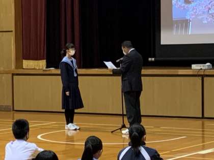 また、コンピュータ部の1年女子生徒は、ライフイズテックレッスンコンテストのSDGs問題解決部門で奨励賞をいただきました。部活動において取り組んでいる成果が評価されました。おめでとう。