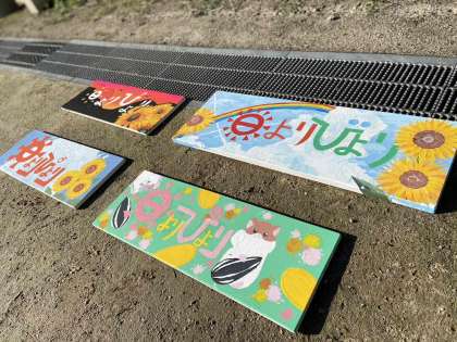 本校のひまわり畑に素敵な看板ができました。美術部の部員さんが絵を描き、緑花部会のみなさんが看板として立ててくださいました。咲く日が本当に楽しみです。