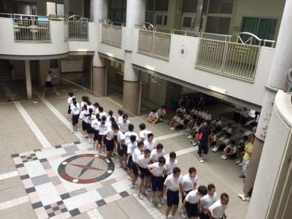 シルバーウィークも終わり、いよいよ来週金曜日は体育大会です。本日は4限目に1〜3年を縦割りにし長縄跳びの練習をしました。雨天のためピロティ—と体育館に分かれての練習でしたが、みんな気合が入っていて、掛け声が響き渡っていました。
