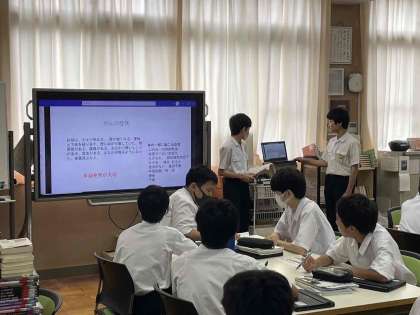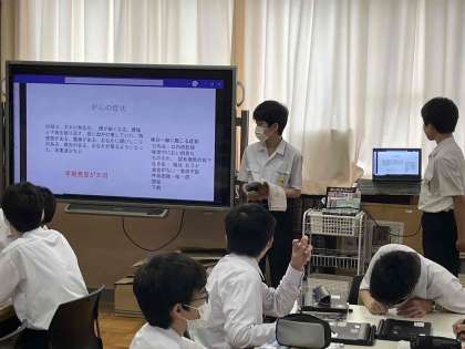 保健体育の授業で、生活習慣病のプレゼンテーションを行いました。電子黒板を活用した、わかりやすいものでした。