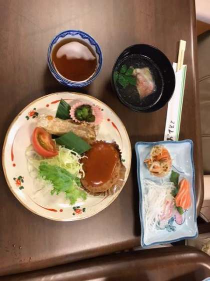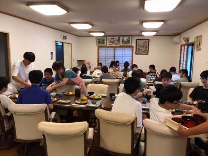 夕食タイムです。マリン体験でかなり体力を使ったので、食欲は、旺盛ですね。
