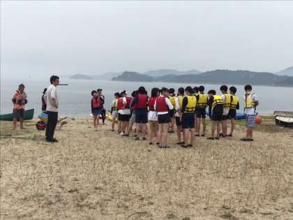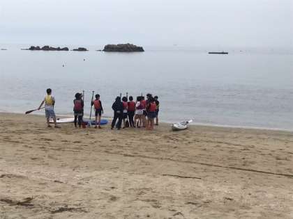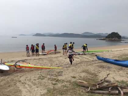 シーカヤック、ウィンドサーフィンの事前指導から、本番へ、いよいよスタートです。