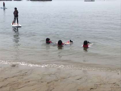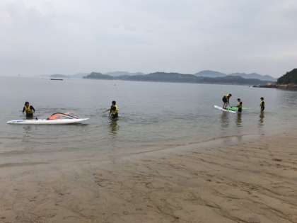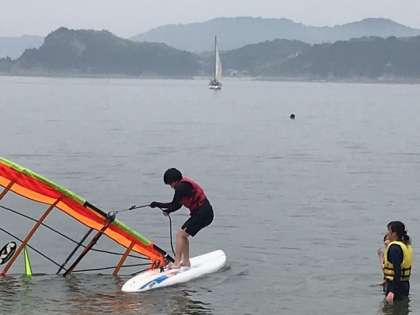 ウィンドサーフィンは、かなり難しい。苦戦しています。