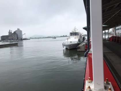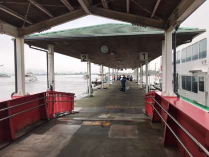 修学旅行 笹岡港に到着