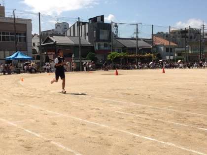 引き続き、女子の「1000m走」と男子の「1500m走」です。みんな苦しそうな顔をしながらも一生懸命走りぬきました。その中でも「1500m走」では独走状態での1位ゴールでした。