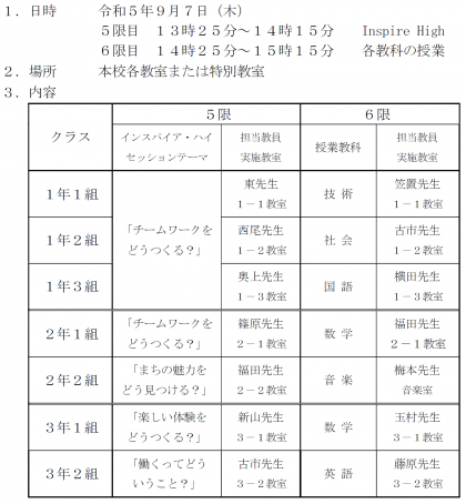 9月7日(木)に授業参観を実施いたします。生徒たちの日頃の活動を見ていただける機会ですので、御多忙の折とは存じますが、ぜひご来校賜りますようよろしくお願い申しあげます。