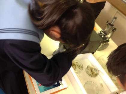 1年1組は国語「『本』についての本づくり」、1年2組は理科「水の中の小さな生物を調べよう」の授業です。