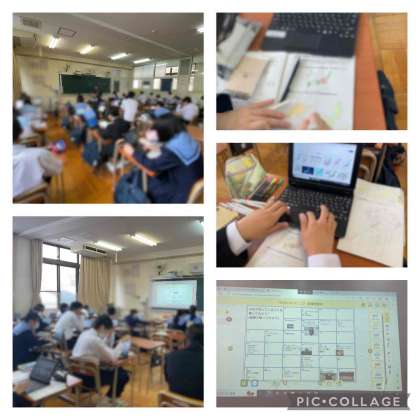 2年生の社会では日本の地域区分について勉強してきたことに関連して、自分たちでさまざまなものの地域区分を調べ、プリントの地図に色を塗っていきました。また後半は、これから九州に入るということで、九州について知っていることをコラボノート(協働学習ツール)に書き込み、みんなで共有しました。