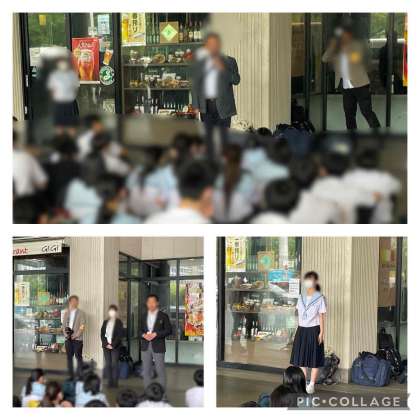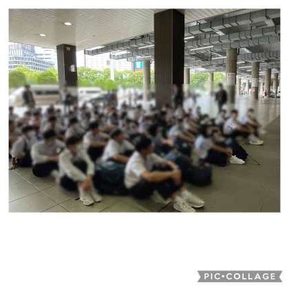 定刻より少し早く出発式が始まり、校長先生、生徒代表、添乗員さん、写真屋さんからの挨拶がありました。いよいよ修学旅行が始まります!
