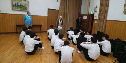 宿舎のオーナーさんから、お話を聞いています。聞く姿勢が良いと褒められていました。