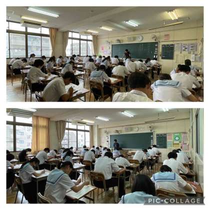 今日は3年生にとって2回目の実力テストです。夏休みに学習した成果を発揮できたでしょうか。来週火曜日にはチャレンジテストも控えていますので、継続して頑張ってください。