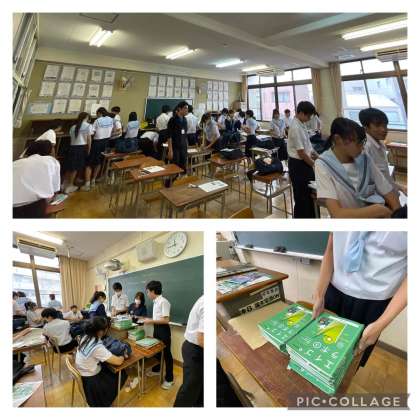 今日から中間テストが始まりました。テストが終わるとノートやワークを提出することが多いので、教科係がとりまとめて担当の先生へ提出します。明日もテストですから、提出忘れなどがないようにしてくださいね。