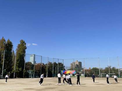 爽やかな風が吹く秋晴れの今日は、グラウンドからあべのハルカスがいつもよりはっきり見えていました。ボール遊びをする生徒たちもいつもより楽しそうです。