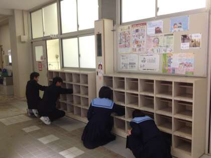 明日はいよいよ終業式です。本日は4限目に大清掃を行いました。床のモップ掛け、靴箱や壁、ドアなどもきれいに拭き掃除をしました。