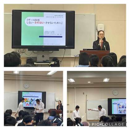 今日は大阪男女いきいき財団からキャリア・コンサルタントの邊見様をお招きし、3年生を対象として「デートDV」をテーマに性教育の授業を行なっていただきました。交際しているしていないに関わらず、さまざまな人間関係のなかで気をつけないといけないことをたくさん教えていただきました。人権問題としてもとても勉強になったと思います。