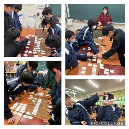 1年生は国語の時間で来週月曜日の百人一首大会に向けた練習をしていました。本番でも白熱した戦いを期待しています!