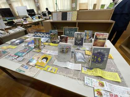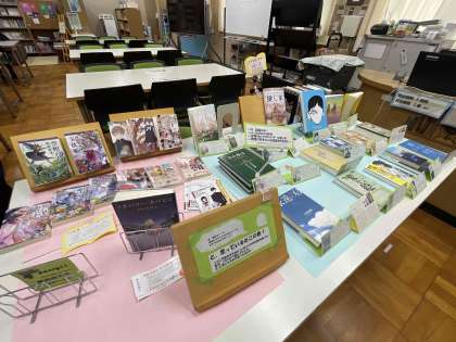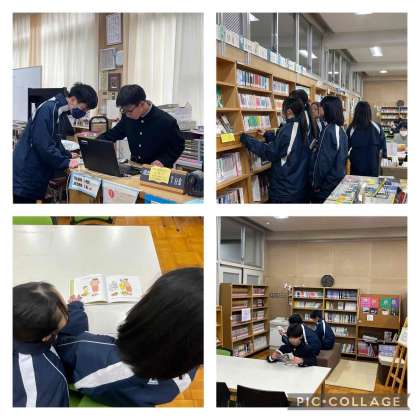 借りていた本を返しにくる生徒、漫画コーナーで読書に夢中になっている生徒、本を真剣に選んでいる生徒、英語の絵本を読んでいる生徒…図書室はいつでも穏やかな時間が流れています。新刊コーナーもとても充実していますので、たくさん図書室を利用してみてくださいね。