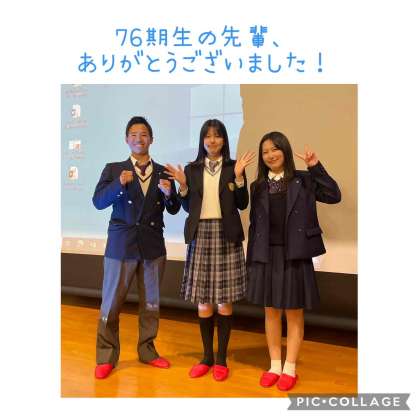 現・高校2年生の76期を代表して、3人の卒業生が自分の通う高校の紹介や高校生活のこと、高校選びについてのアドバイス、そして中学生の今やっておくべきことなどをたくさん話してくれました。年齢の近い先輩から聞く話はとても参考になったのではないでしょうか。