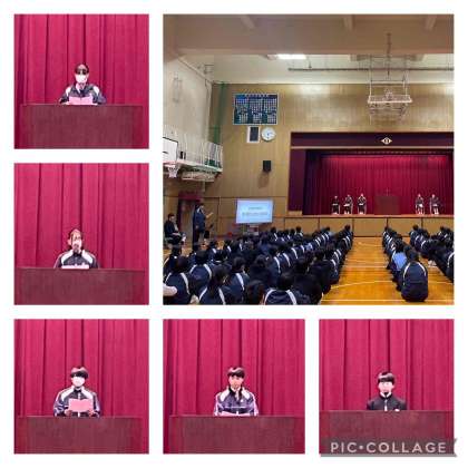 今日は令和7年度前期の生徒会役員選挙が行われ、緊張しながらも全員立派に意気込みを述べて演説をしました。今回は対立候補がないため信任投票となります。(※2枚目の写真は6限が始まる直前の司会と立候補者の皆さんです)