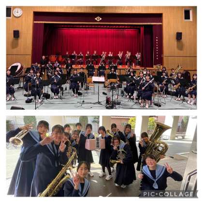 昨日3月20日は吹奏楽部が初めての定期演奏会を行いました。保護者の方や在校生、卒業生、そして地域の方にもたくさんお越しいただき、体育館いっぱいの観客に見守られながらアンコールを含めた8曲を演奏しました。10月に引退した3年生はこれで完全に卒部となります。また、OB・OGも照明や司会などを手伝いに来てくれて、まさに一体となって作りあげた演奏会となりました。足を運んでいただいた皆さま、本当にありがとうございました!