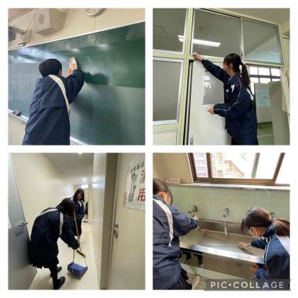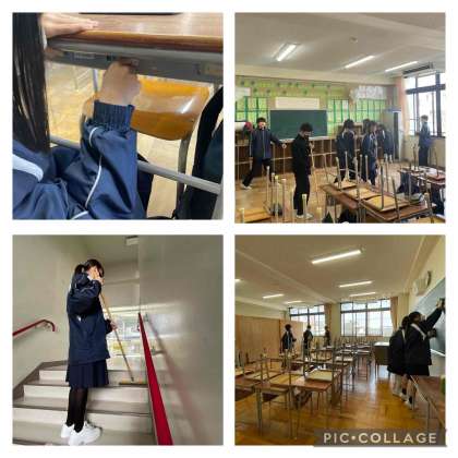 また、その後の大掃除では1年間使った教室や特別教室、階段や廊下などをみんなで丁寧にキレイにしました。スッキリした状態で新学期を迎えられそうですね。