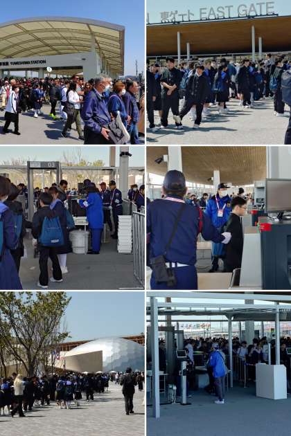 団体ゲートでは、子どもたちの荷物検査はなくスムーズでしたが、教職員の皆さんは、荷物検査があります。空港にあるようなゲートです(写真参考)。