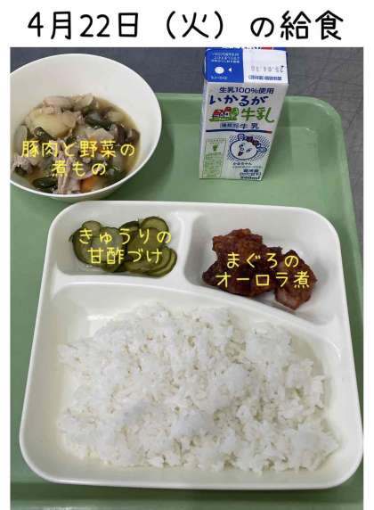 さて、本日の給食「オーロラ煮」はケチャップベースのソースをからめた料理だそうですが、この「オーロラ」はフランス語で曙(あけぼの)色のソースを意味するオーロラソースに由来しています。ケチャップの色が明け方の色に似ていることから付けられたようです。