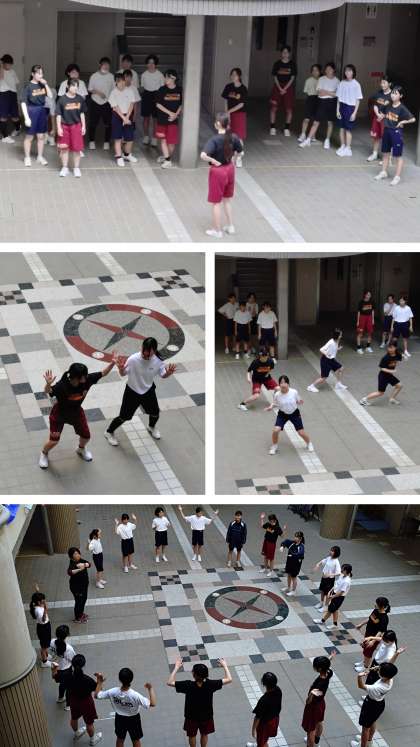 練習では、基礎的な動きを上級生が1年生に優しく教えている姿が見られました。