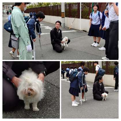今朝、生徒たちの登校時間に『迷い犬』が・・・!