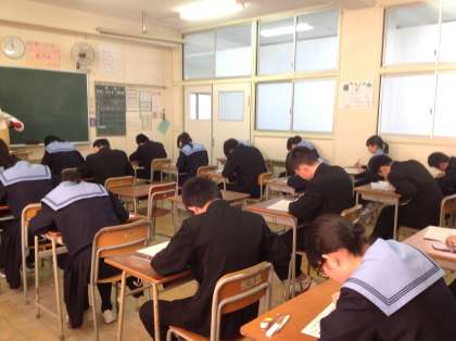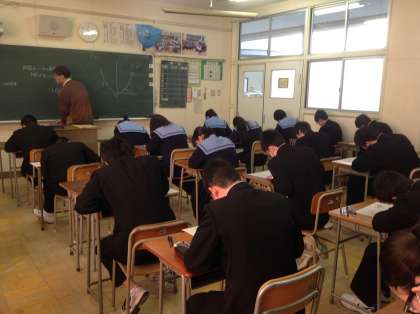 3年生は、中学校最後の学年末テストです。本日は、理科・数学・保健体育のテストです。受験を控えて、真剣そのものです。