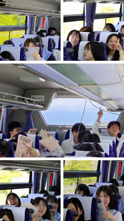 バス内では、『クイズ大会』が始まりました。色々と準備をしてくれているようです。