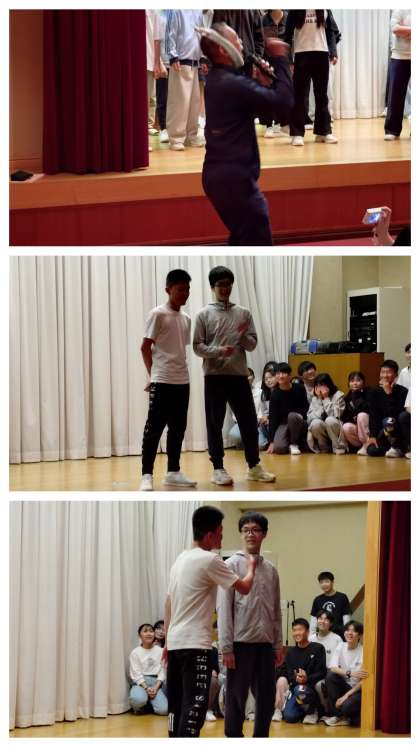 夜の『レクリエーション』の様子です。イントロクイズあり、漫才あり、ダンスあり、等など、面白企画満載です。